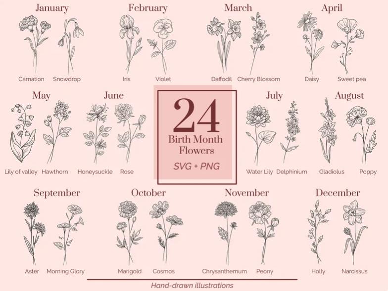 These are birth month flowers patterns that will help you find the right one to use to sell, or to use for yourself.